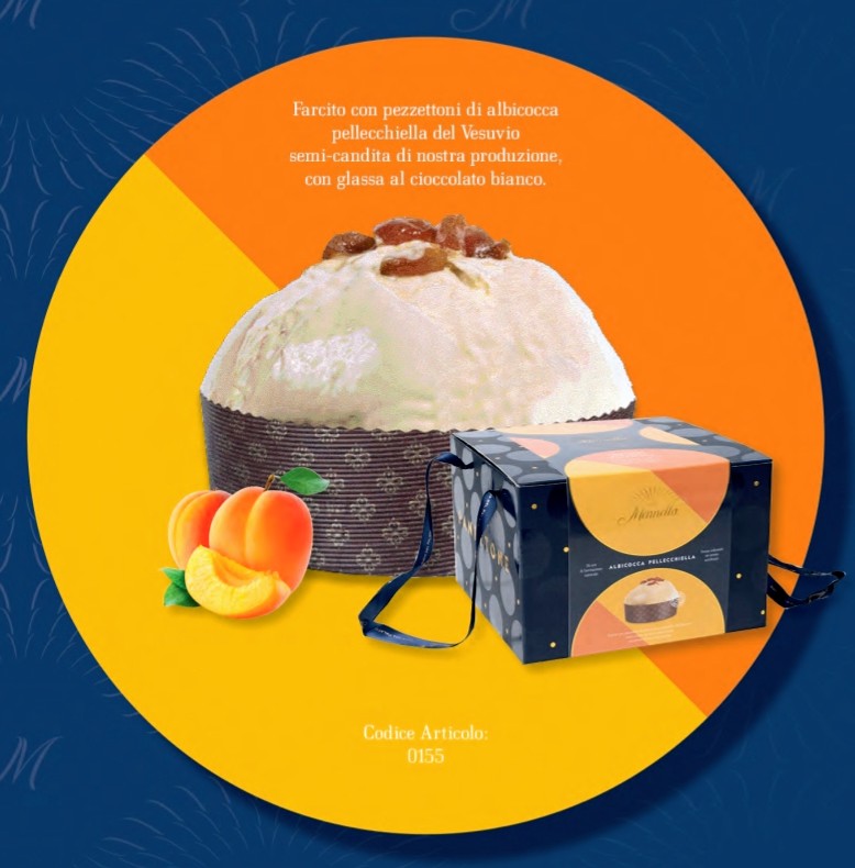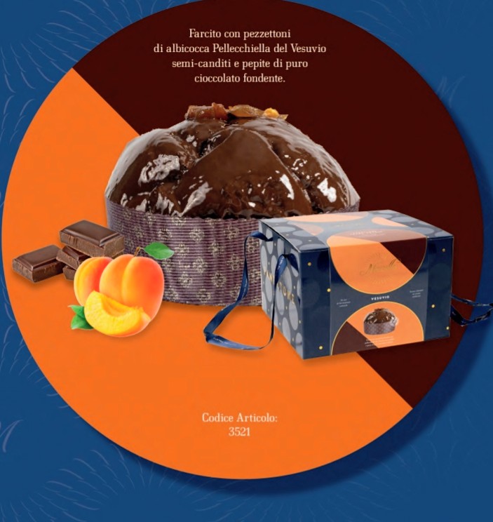 Farcito con pezzettoni di albicocca Pellecchiella del Vesuvio semi-canditi e pepite di puro cioccolato fondente.