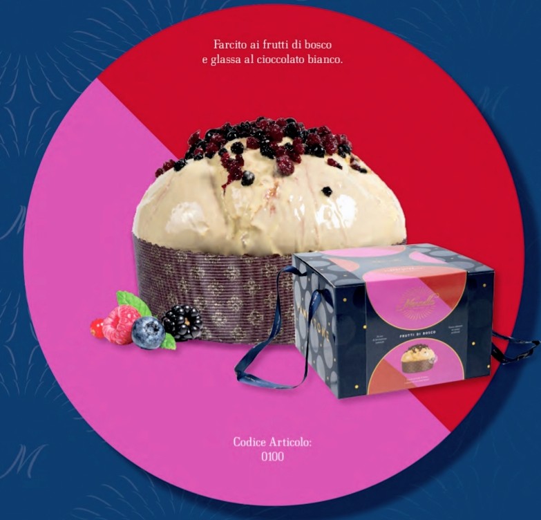 Farcito ai frutti di bosco, con glassa al cioccolato bianco.