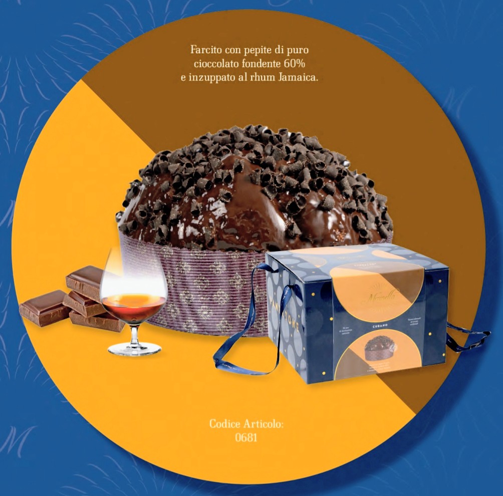 Farcito con pepite di puro cioccolato fondente 60% e inzuppato al rhum jamaica.