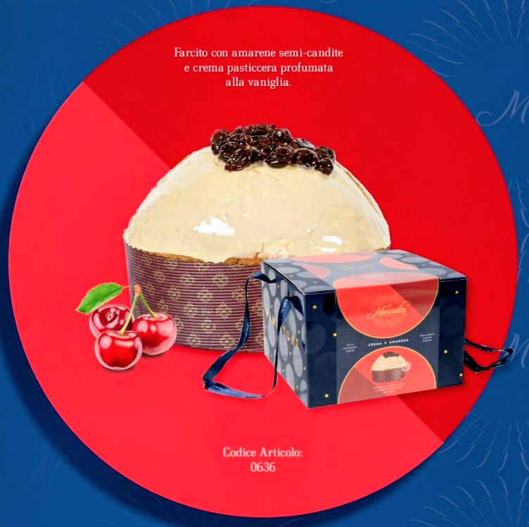 Farcito con amarene semi-candite e crema pasticciera profumata alla vaniglia.