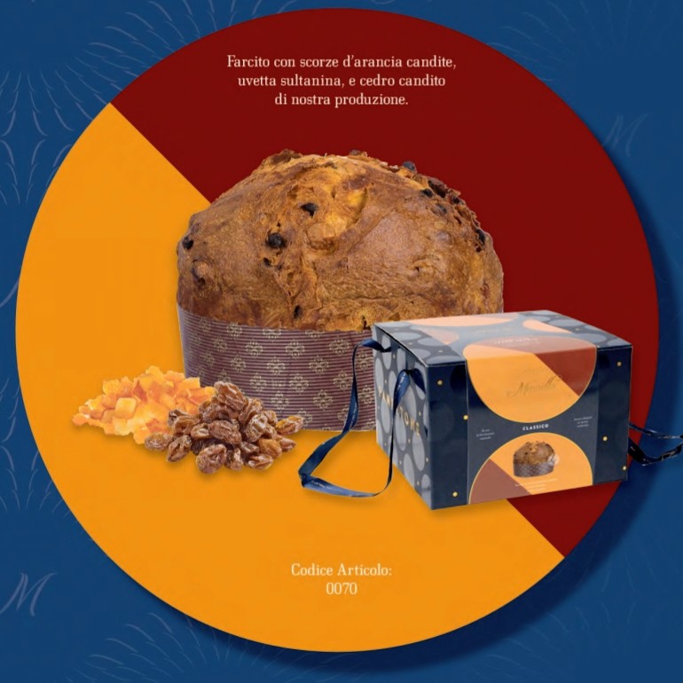 Farcito con scorze d'arancia candite, uvetta sultanina, e cedro candito di nostra produzione.